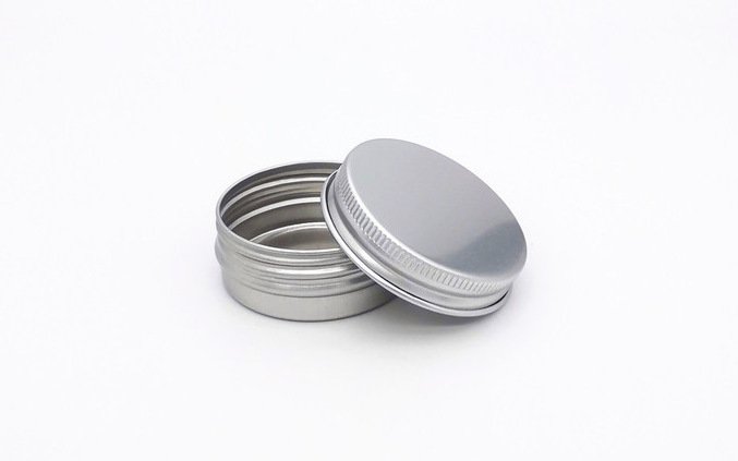 This aluminum can with a Screw-top Lid has a diameter of 40mm, a height of 18mm, and a capacity of 15ml, suitable for cosmetics, food products, confectionery, herbs, spices, creams, waxes, balms, and water-based products.