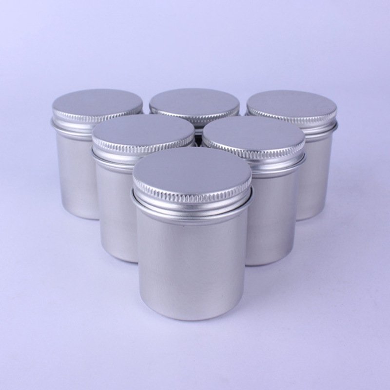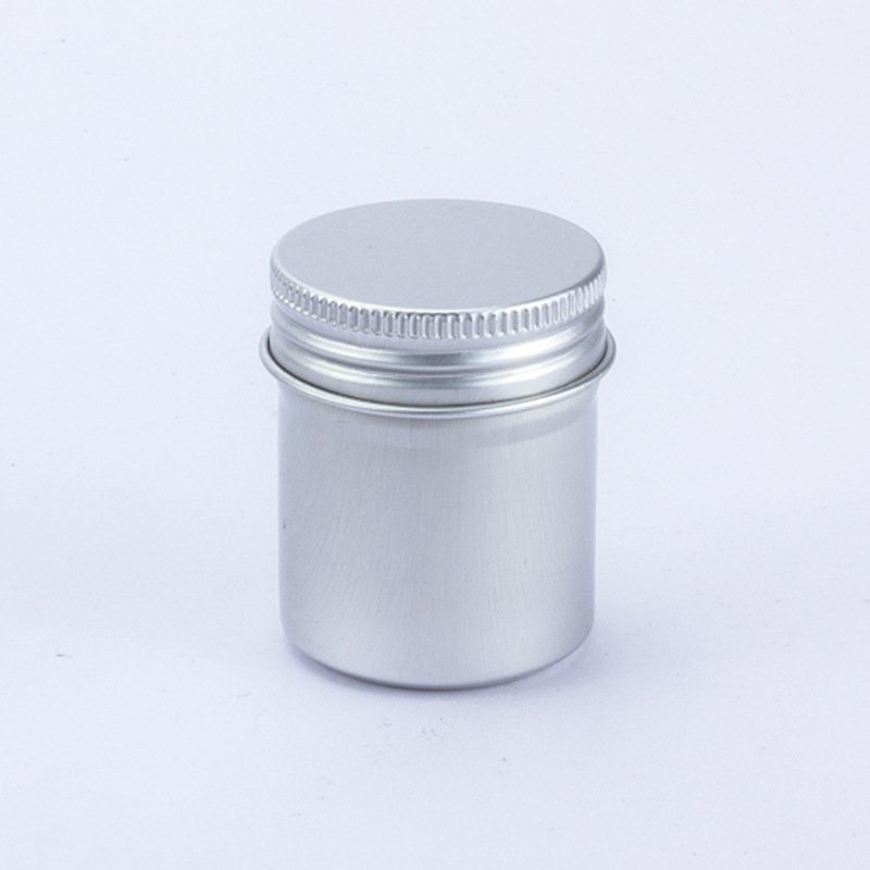 This aluminum can with a Screw-top Lid has a diameter of 40mm, a height of 50mm, and a capacity of 50ml, suitable for cosmetics, food products, confectionery, herbs, spices, creams, waxes, balms, and water-based products.