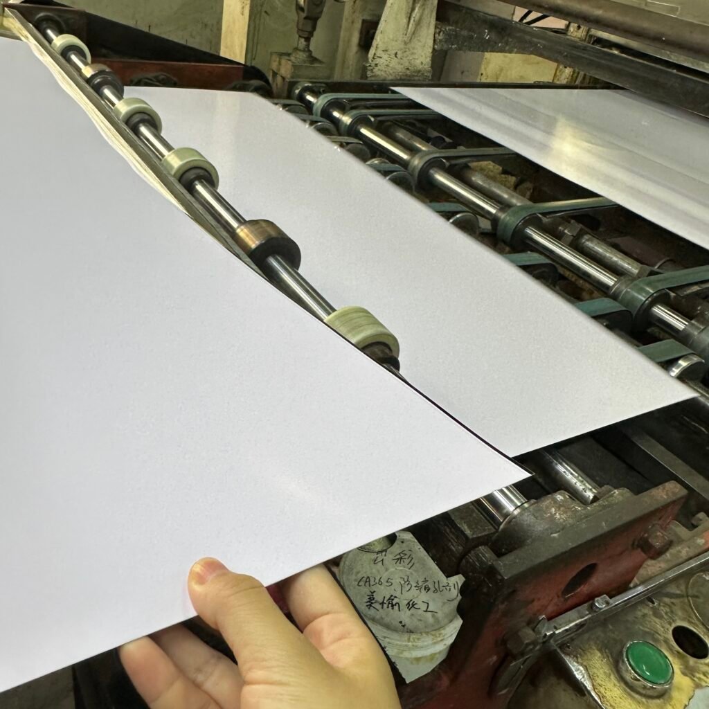 A varnish/overprint coating (glossy, matte, or spot UV) is applied to protect the ink and enhance appearance.