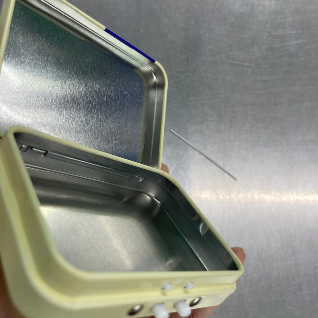 NO. 2 tin box with hinge production process and assembly by metal bar