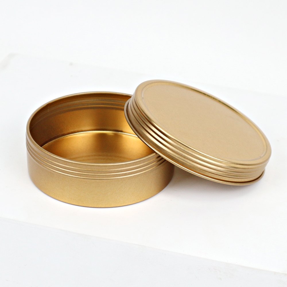 Small round tin box with Screw lid, Used as candle Tin box, salve, spices or Candies box