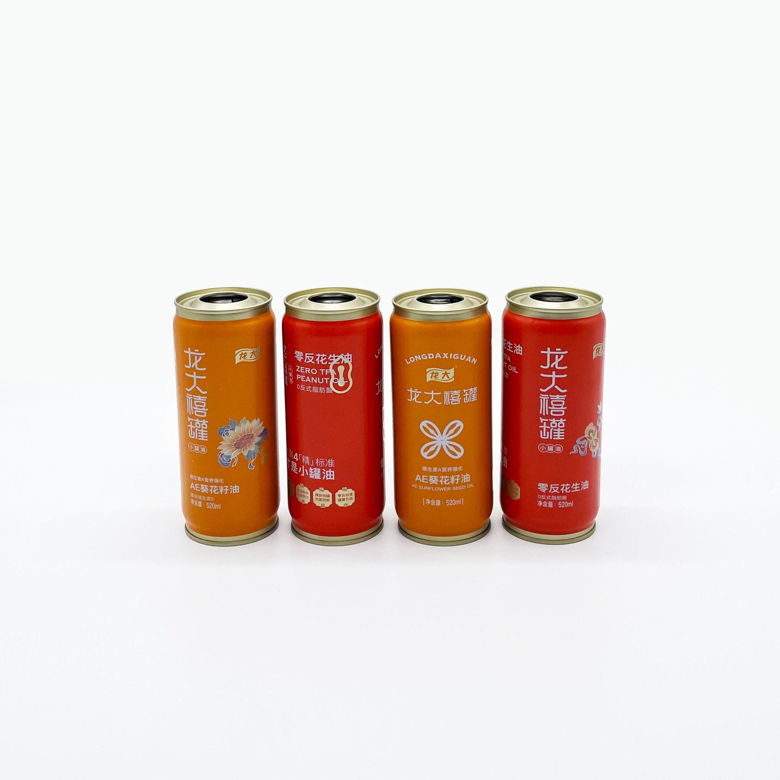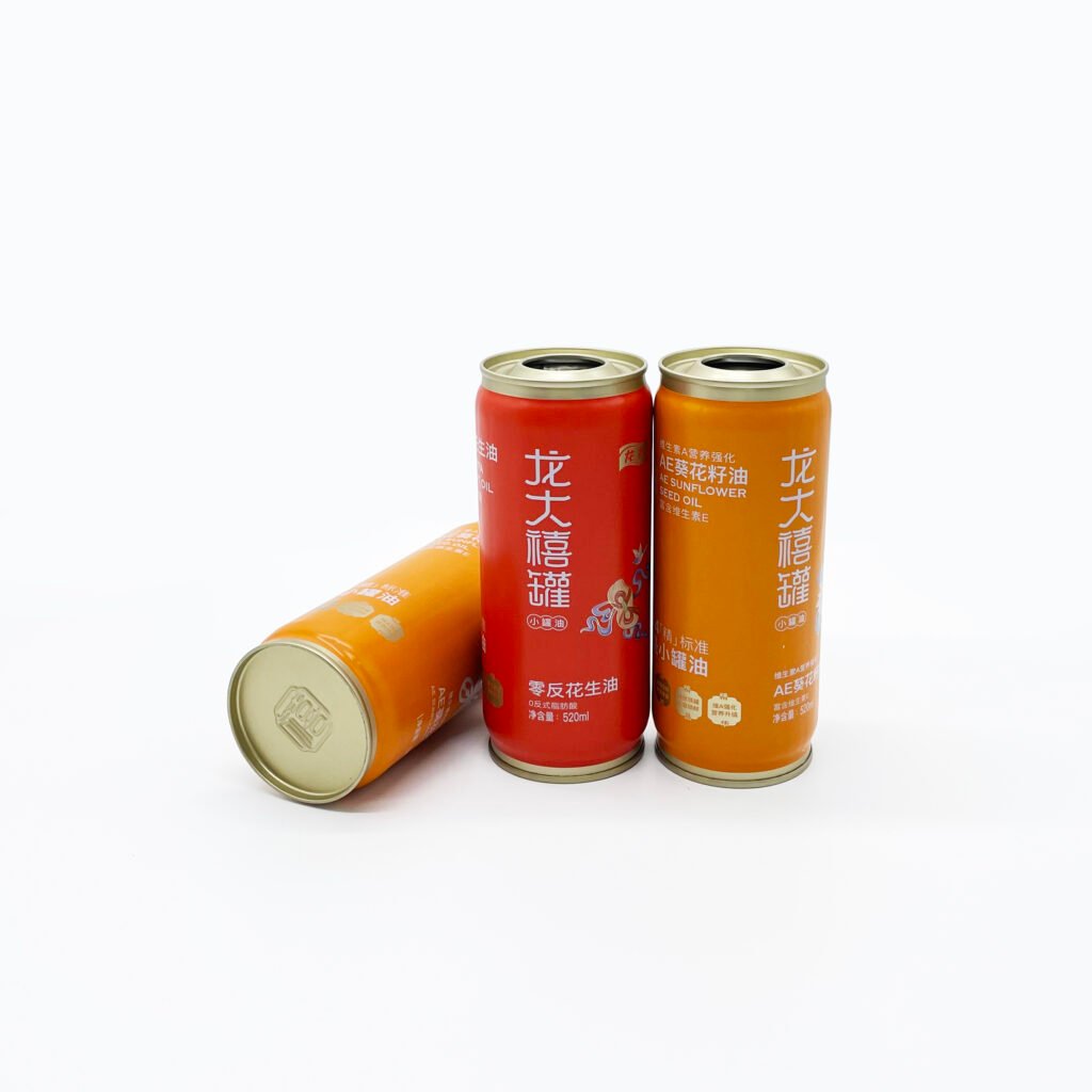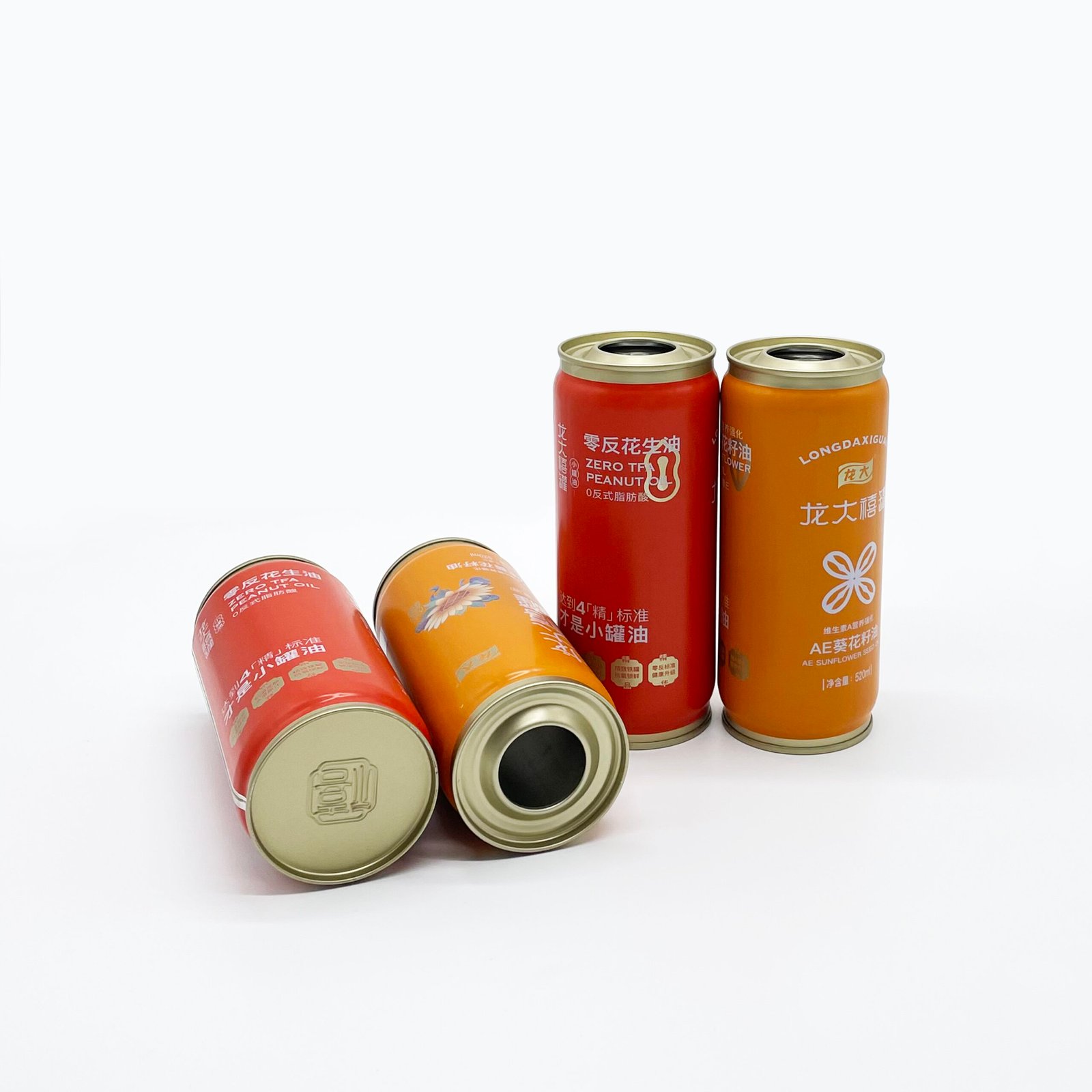 custom oil tin round Can, 520 mL (Dia65xH163mm), plastic cap, food Grade coating, CMYK Printing