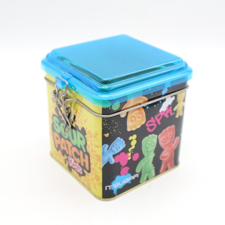 • Candy Square Tin Box – Hinged Lid, 105x105x105mm