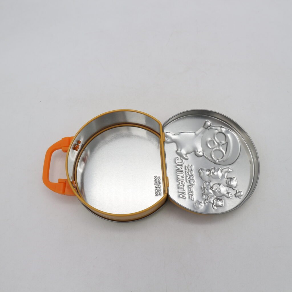 Custom Tin Can – Hinged Lid, 106x94x35mm compact and portable, making it ideal for storing small craft accessories such as beads and small jewelry, craft parts, and nail art. When going out or traveling, it can be used to hold pills or cosmetics, such as lip balm, essential oils, ointments, and makeup. It can also serve as a container for DIY candle making, creating a romantic and cute atmosphere.