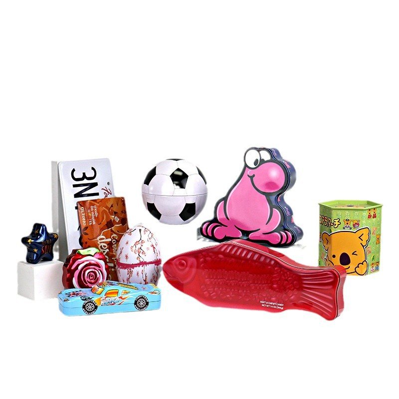 Tin plate is a highly customiable material that can be designed to any shapes. Except for regular shapes, you can find more unique shapes here like egg-shaped tin box, ball shaped tin box, star shaped tins, car shaped tin box, house shaped tin container, book shaped metal tin box, tree shaped tin box and any other custom irregular shapes.